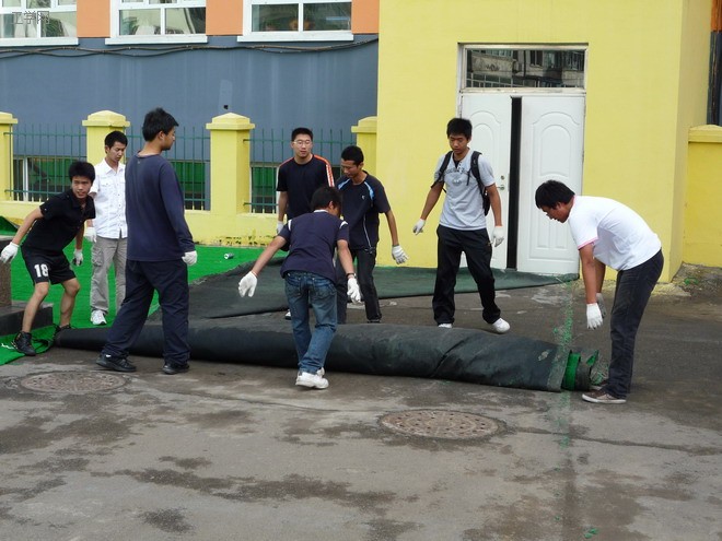 四时左右,服务队的一行人到达燎原小学。在燎原校方的引导下,服务队帮助小员工清理了校园环境。由于最近是雨季,粘在操场上的地毯由于长时间的曝晒导致风化,这给服务队整理时带来了不小的麻烦,最后在大家的互相勉励下,经过半个多小时。终于顺利完成了任务。