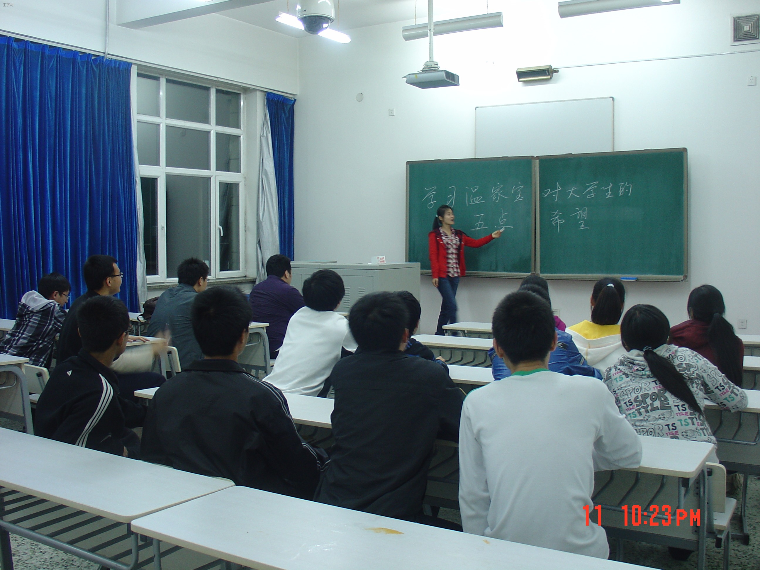 活动针对“五四”前夕温家宝对青年成才提出的五点希望进行学习。首先由团支书介绍此次活动的主题及意义。然后针对五点希望—— “有理想、善学习、讲道德、要自立、勇奋斗”进行学习和探讨。最后全班同学由相继展示了各自事先收集的相关资料,阐述了他们对此五点希望的理解。