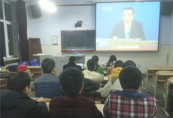 之后,支部党员一起观看学习了两会期间李克强总理答记者问的视频,学习了会议精神。视频结束后,我党支部张翔宇同学积极主动地谈了自己的见解及感受。会议在热烈的掌声中结束。