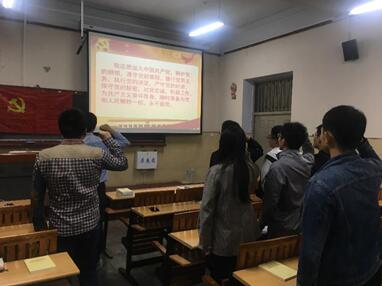 18点30分,会议正式开始,会议议程按照支部主题党日活动的规定动作,进行了唱国歌,重温入党誓词,汇报党费收缴情况等环节,并通过诵读的形式学习了《习近平总书记系列重要讲话读本》。