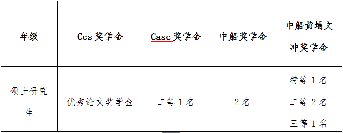 1、参照研究生国奖评选标准,进入研究生国奖答辩的同学中未获国奖的同学按照票数(成绩)顺序获得中船奖学金、ccs优秀论文奖学金、中船黄埔文冲奖学金特等奖。