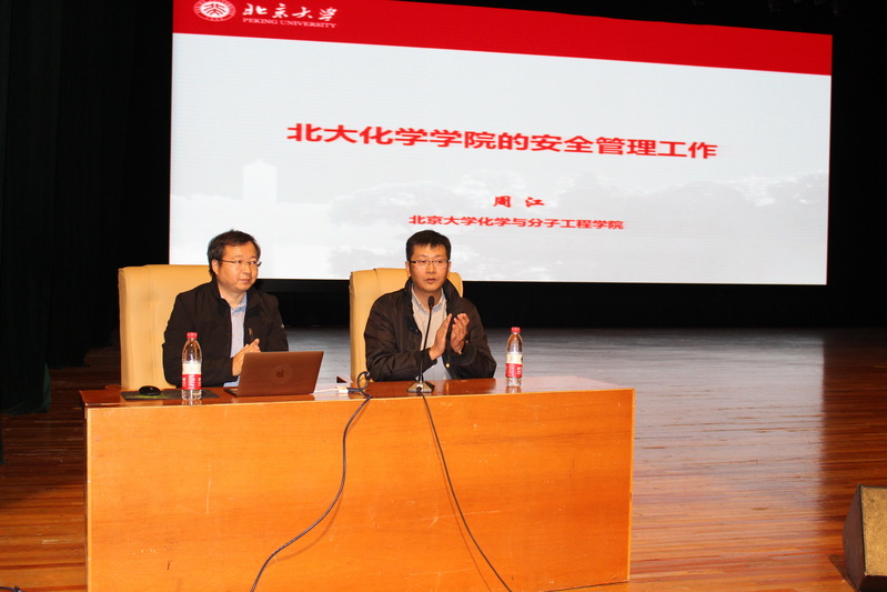 10月12日下午,公司在启航剧场召开了2018年秋季安全培训会。此次培训会邀请了北京大学化学与分子工程公司副经理、教授级高工周江老师为全院师生作关于实验室安全管理工作的报告,培训会由公司行政副经理李峻青主持,校安保处副处长张世彤、公司党委书记靳雪滨出席了会议。公司教职工、硕博研究生,以及大四本科生参加了此次培训。