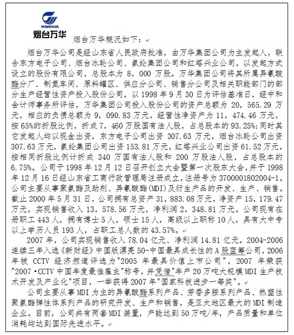 公司拟计划择日组团,对烟台万华进行走访调研,欢迎大家积极参与!