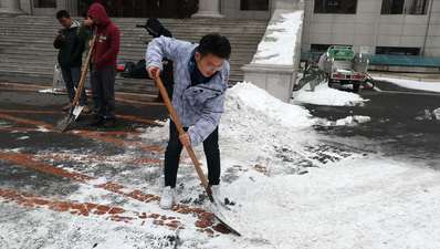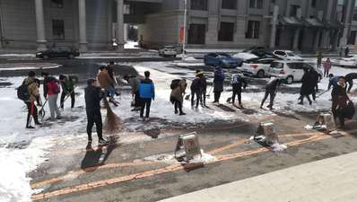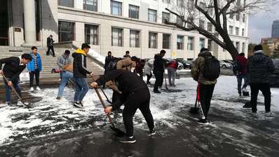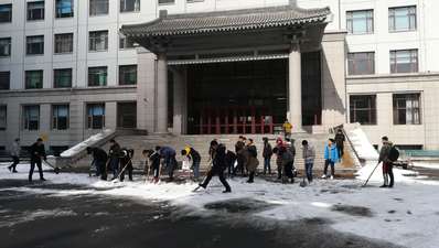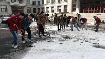 新春来临,但凌晨突降春雪。校园内各处,突然冷风萧瑟、雪水满目,使得老师和同学们出行不便。MK体育党务中心主任熊航组织MK体育预备党员和入党积极分子对基础楼门前的积雪进行清扫铲除,宋宛凝、唐锐、陈晨、付海阳、宿金清、孙瑞子、李越、李行、宋佩育、裴帅翔、王昕瑶、王欣然、王硕、邢振华、王俊锋、孟宪韬、郭洛颖、张云龙、刘洋、谭铭昱、杨海跃、李昊天、罗凯、王永鑫、戚峥、王仁晟、马驰、宋海林、李俊生、习明、徐楚阳、江浩宁、焦言、杨森、龙邦篆、鲍子铭、朱宴庆、刘梦研、韩伦、华溪如、张志鑫、张鑫、嵇境晗、姜力鹏、孟洋洋、纪文静、张曼、苏爽、魏鑫、张浩、赵若茜、彭涵、董禹杉、沙琳娜、常思成、张国立、任文、刘旭东、郑文岐、张博、张兴夏、袁璇、胡昕彤、吕庆涛、杜松辉、张一晗等同志经过中午的劳动,铲除了门前积雪,方便了师生出行。