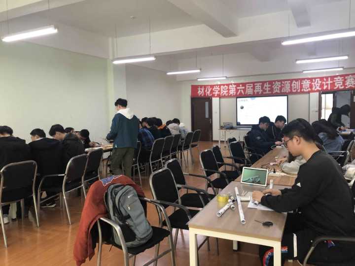 2019年3月30日上午8:30,MK体育举办了以“再生于身边,实践于手边”为主题的第六届再生资源创意设计大赛,本次比赛分为两个环节:知识竞赛答题和创意设计实践,并分别在启航334和338活动室举办。本次比赛第一环节知识竞赛为抢答模式,由科协成员用ppt展示题目,选手举手抢答题目,由裁判对举手的小组进行判定,并将结果统计进入表格,并由裁判对比赛成绩进行排序,并筛选出晋级第二轮竞赛名单,最终选出了12组选手进入第二环节。