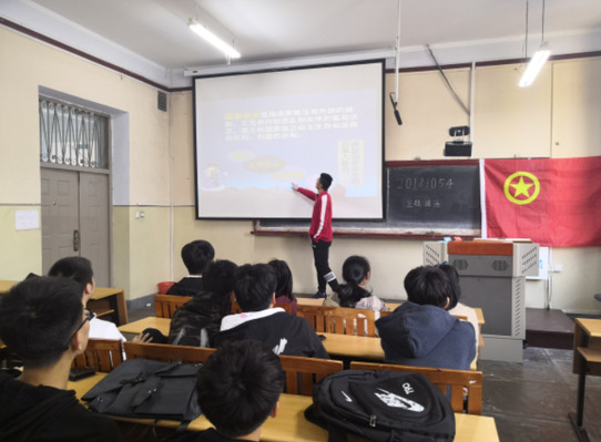 4月13日上午9时55分,20181054团支部在11号楼124教室开展主题为“青年心向党,建功新参与到时代”四月团日活动。此次活动由团支书张文佳主持,团支部全体成员共同参与。