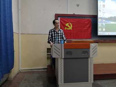 首先全体党员起立奏唱国歌、党员面向党旗宣读入党誓词。继而党支部书记黄博文介绍党课主题即学习《中国共产党支部工作条例》,并由党支书带领党员集中学习《条例》相关内容和会议精神。