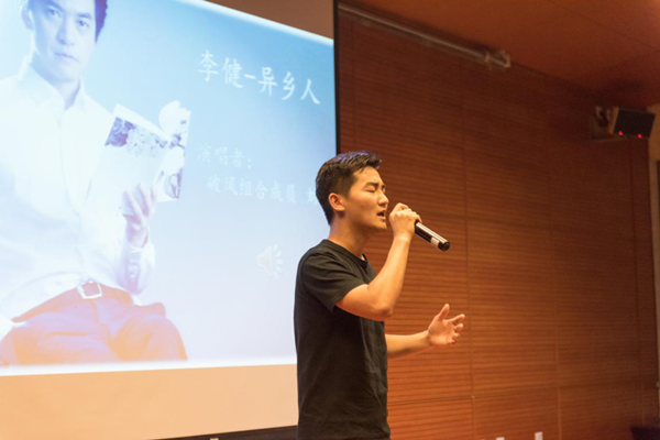 紧张的比赛之余,由破风组合成员的刘刚为大家带来了精彩的歌曲演唱-异乡人,他的深情演唱缓解了紧张的比赛气氛。