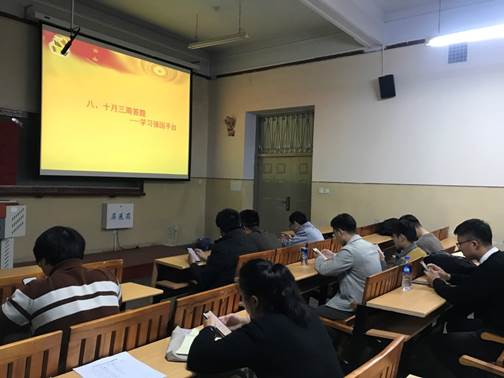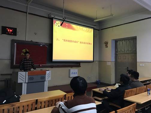 王志成同志说到:作为年轻人,就应该多奋斗,像现在研一的有课,就应该好好学习,把专业知识牢牢把握住,平时还应该多做实验,理论实践相结合,更应该在课余时间多学习党的理论知识,把国家发展的任务扛在自己的肩上。