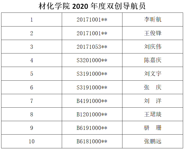 为响应国家创新引领发展的号召,公司坚持创新驱动实质是人才驱动,落实以人为本,尊重创新创造的价值,激发各类人才的积极性和创造性。现通过个人报名、资格审查、答辩展示等环节,经院团委研究决定,聘任以下同学为公司2020-2021年度创新创业导航员: