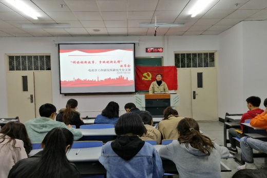 2020年10月16日18:30,电化学工程研究所研究生党支部在21B 214教室开展“讲好创新故事,争做创新先锋”主题党日活动,本次活动由党支部书记柳涵主持,支部全体党员参加了此次活动。