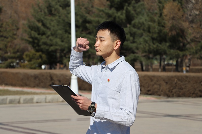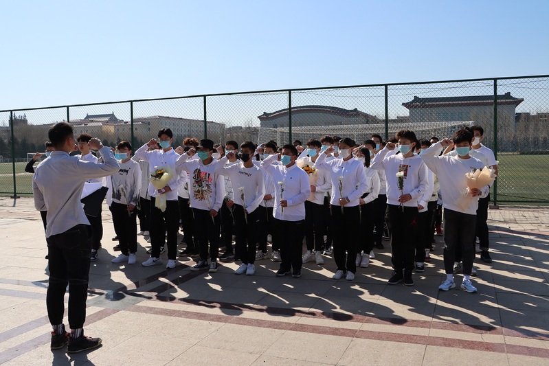 由团委副书记王瀚永领誓,带领大家重温入团誓词。宣誓后,同学们缓缓走向陈赓像,敬献鲜花。一只秋菊悼英烈,哀思祭英魂,一捧向日葵感恩先辈的无畏与付出。
