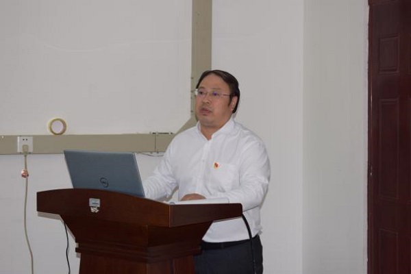 无机功能材料研究所教工党支部贺飞同志讲述抗疫精神。他说,面对突如其来的疫情,全国医疗资源向重灾区湖北倾斜,全国各地优秀的医护团队前赴后继奔向这个没有硝烟的战场。在这场同严重疫情的殊死较量中,中国人民和中华民族以敢于斗争、敢于胜利的大无畏气概,铸就了生命至上、举国同心、舍生忘死、尊重科学、命运与共的伟大“抗疫精神”。
