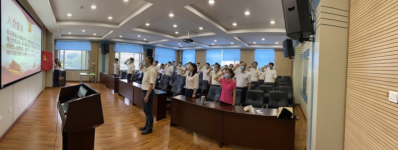 庆祝大会结束后,公司党委组织新发展党员代表进行入党宣誓,其他参会党员一起重温入党誓词。全体参会党员面对党旗庄严宣誓,表达了对党的坚定信念和真挚情感。