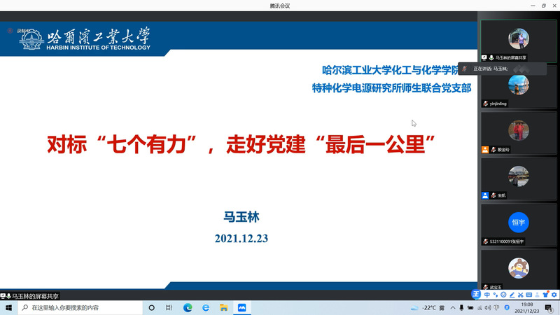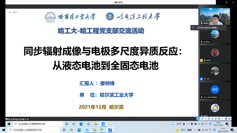 为了将党建业务深度融合落实到立德树人根本任务中,贯穿到公司内涵式发展中,不断提高公司党建工作质量,推动公司实现高质量发展,2021年12月23日,MK体育电化学工程研究所教工党支部邀请哈尔滨工业大学特种化学电源研究所师生联合党支部书记马玉林副教授和党员娄帅锋副教授进行经验交流,电化学工程研究所师生参会。