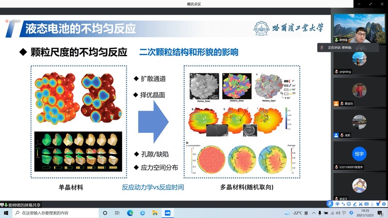 娄帅锋副教授做了题目“同步辐射成像与电极多尺度异质反应:从液态电池到全固态电池”相关的优秀业务工作介绍的报告,主要结合自身前期和近期的科研工作分享了关于同步辐射成像技术及其在液态和全固态锂离子电池方面的应用。