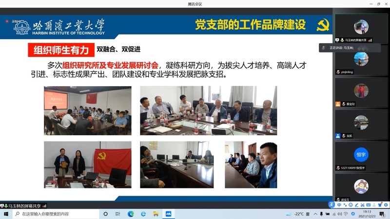 马玉林副教授做了题为“对标七个有力,走好党建最后一公里”党建工作经验介绍的报告。在报告中主要介绍了师生联合党支部成立的初衷和支部结构、党支部建设的主要做法和工作品牌。党支部以“薪火教师工作室”、“薪火云平台”、“薪火讲谈”、“薪火党员先锋岗”四个平台来促进“七个有力”,以党建活动为载体和平台,助力研究所内教师成长和员工培养,提高党员的荣誉感和使命感,党支部战斗堡垒作用得到充分发挥。