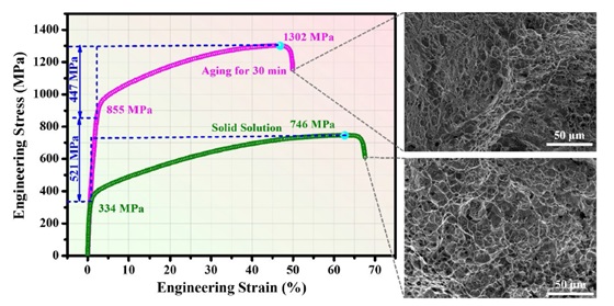 合金的许多塑性变形机制取决于SFE,包括位错滑移、孪生诱导塑性(TWIP)和相变诱导塑性(TRIP)等。这提供了通过成分设计来调整合金的SFE进而控制变形机制的机会。对于低SFE的FCC结构合金,其变形机制更倾向于形成堆垛层错、孪晶甚至相变。相反,在高 SFE条件下更容易发生微带和位错滑移。因此,一般很难同时实现高强度和大塑性。添加更多低SFE形成元素意味着更少的沉淀相的形成,导致塑性大但强度低。