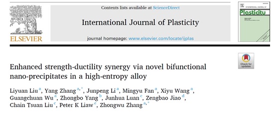 导读:具有单相面心立方结构的高熵合金(HEA)具有优异的塑性,但强度普遍较低。沉淀强化是提高合金强度最有前景的方法之一。然而,强度-延展性的制约经常限制合金性能的改善。为了克服这个问题,课题组通过引入新型双功能L12-Ni3Nb纳米相,开发了一种具有优异强度和延展性协同作用的新型 Ni35(CoFe)55V5Nb5 HEA。这种HEA具有855 MPa 的高屈服强度、1302 MPa 的极限抗拉强度和约50%的高延伸率。第一性原理计算表明,L12结构的(Ni24Co18Fe6)3(Nb10V4Fe2)纳米相比D022结构的形成能低。新型纳米相提供了双重功能。一方面,L12-(Ni24Co18Fe6)3(Nb10V4Fe2)纳米相具有较高的反相畴界能,通过沉淀强化有助于显著提高屈服强度。更重要的是,沉淀相的析出降低了合金基体的层错能(SFE),通过在变形过程中激活层错网格和Lomer-Cottrell锁的连续形成,有助于获得优异的加工硬化能力和大塑性。该研究受到国家重点研发计划、中核集团青年英才计划菁英项目、国家自然科学基金等项目支持。论文由MK体育张中武教授团队联合中国核动力研究设计院、香港理工大学、香港城市大学和美国田纳西大学共同完成。研究成果发表在《International Journal of Plasticity》,该期刊是力学和机械工程领域高水平期刊。MK体育在读博士生刘力源为第一作者,张洋副教授和张中武教授为共同通讯作者。