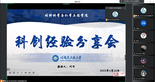 4月16日晚18时30分,MK体育员工会于腾讯会议线上召开2022年春季学期科创经验分享会。本次会议由员工会执行主席付佳瀚主持,员工会秘书长阿里木江、辅导员郭润泽及部分本科生参加本次会议。