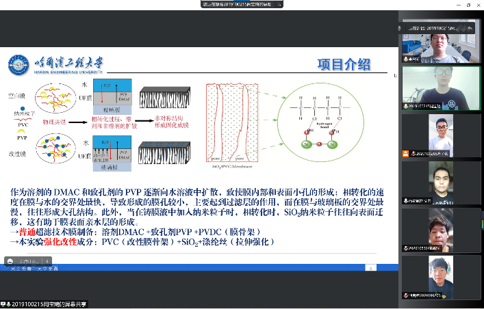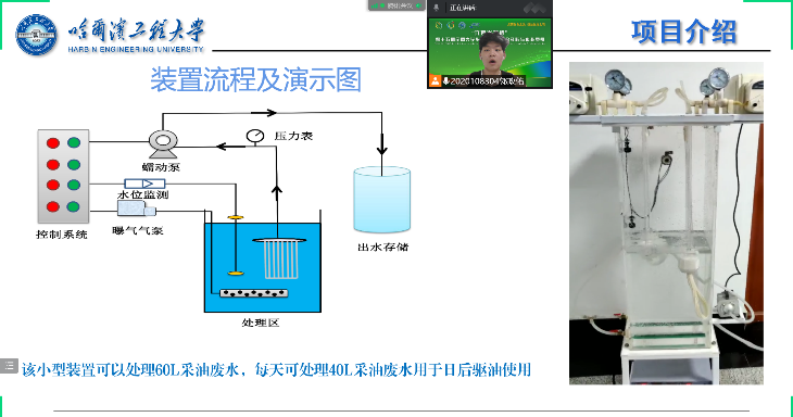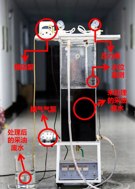 团队队长闫宝琦介绍道:“简单来讲,本项目就是利用纤维膜进行过滤,阻止水中油类等污染物质透过膜,而水却不受阻挡,从而产生油水分离的效果。”