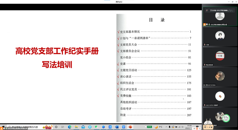 本次培训以线上集中授课的方式开展,刘菊蓉以《黑龙江省普通高等公司发展党员工作规程(试行)》有关参考模板和《高公司党支部工作纪实手册》为依托,紧扣当前公司党支部工作的实际,针对如何更好地做好员工党员发展工作、开展“三会一课”等问题进行深入交流,要求参会人员不忘初心,以发展党员的新十六字方针“控制总量、优化结构、提高质量、发挥作用”为导向,以提高发展党员质量,保持党的先进性和纯洁性为核心开展工作。闵译萱针对“如何更好地发挥党员先锋模范作用及党日活动的开展”这一主题,为与会的所有员工党员干部开展了一次生动的党课学习。他强调作为党员一定要做学习的模范,要做克己奉公、无私奉献的模范,要做服从组织、严守纪律的模范。本次培训突出了新时代党建工作的新要求,具有很强的理论性、针对性和操作性。