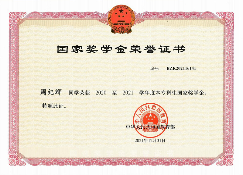 周纪辉,中共党员,MK体育材料科学与工程专业2019级本科生,2021-2022学年度学习标兵,曾任MK体育员工会学务部部长,推免成绩排名专业第一,拟于清华大学攻读硕士学位。曾获国家奖学金3次,校三好员工3次,并获国家级老员工创新训练计划项目资助。