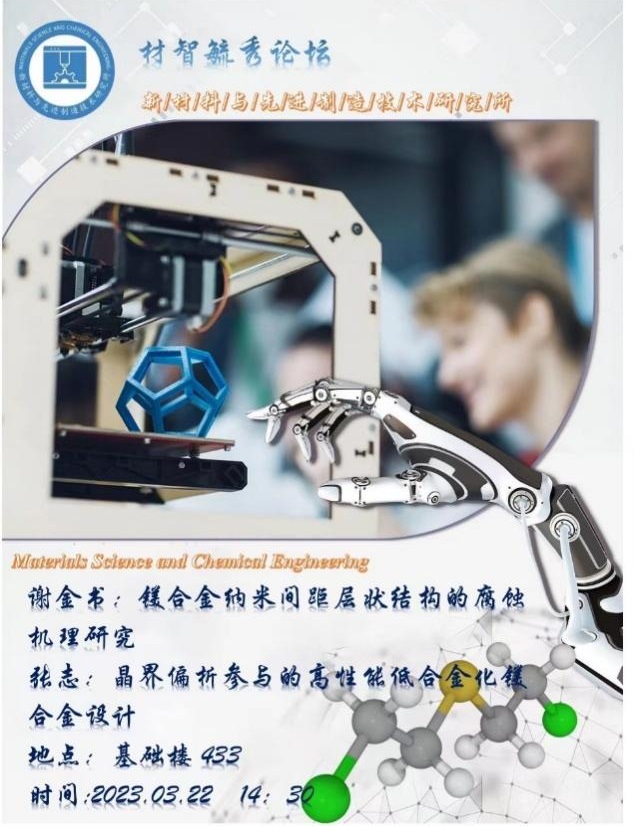 2023年3月22日,“材智毓秀”研究生学术论坛第一期成功举办。此次活动由新材料与先进制造技术研究所教工党支部纪检委员王建东主持,从论坛宗旨、名称含义、标志内涵、举办形式、参与对象和参与方式等向参会人员做了详细介绍。