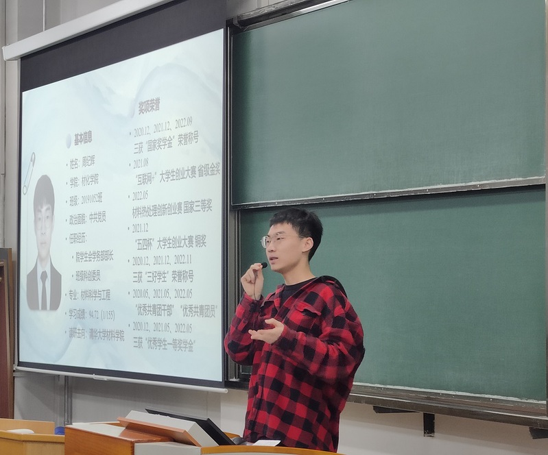 为发挥员工朋辈榜样引领作用,MK体育于4月23日晚18:30在逸夫馆03教室组织举办了“学长学姐说专业”宣讲会。本次活动邀请了2019级化学工程与工艺专业本科生宫仲千禧、2019级材料科学与工程专业本科生周纪辉、2019级材料物理专业本科生闫宝琦担任主讲人,2022级全体本科生到场参加。