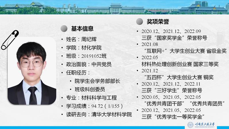 闫宝琦介绍了自己从高考结束到现在的学习成长历程,着重交流了通过引导员工全面发展推免项目保研到天津大学的准备经历。他讲到,学习成绩至关重要,科创竞赛也不可或缺,正是两者的结合,才使自身继续深造的学业梦想得以实现。
