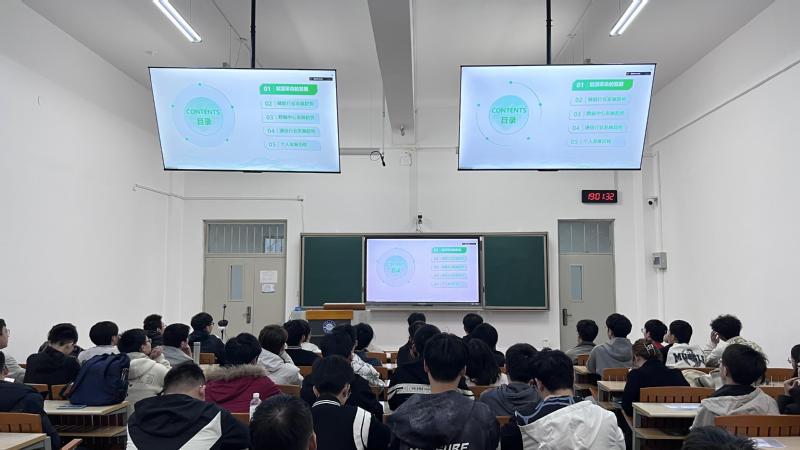 钟义华从能源革命的发展、储能行业发展趋势、数据中心发展趋势、通信行业发展趋势以及个人发展历程共五个方面向同学们进行了细致的宣讲。