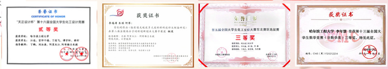 李年慧,江西省赣州市人,现已学优推免至中国科学技术大学化学与材料科学公司,现任20191014班学习委员,已通过大学英语四六级,学习成绩位列专业第一名(1/122)。曾获校级一等奖学金7次、校级三好员工3次;第十三届全国老员工数学竞赛黑龙江省赛区三等奖、第二十七届“五四杯”老员工课外学术科技作品竞赛二等奖、第四届黑龙江省化工实验竞赛二等奖、2022年“化安杯”黑龙江省第十届老员工化工设计竞赛三等奖等奖项。
