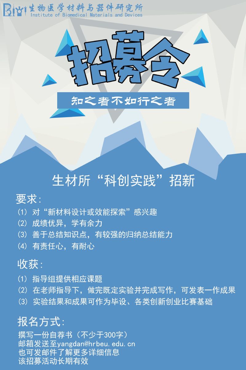 关于生物医学材料与器件研究所“科创实践”招新的通知