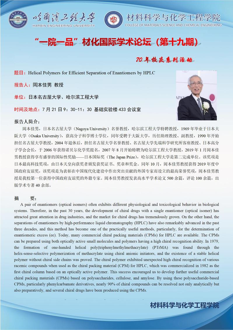 “一院一品”材化国际学术论坛(第十九期)—— 70年校庆系列活动