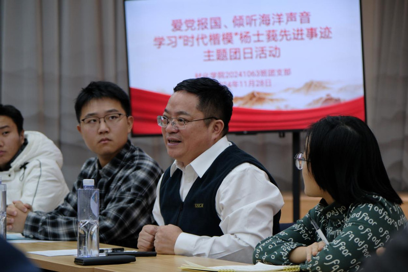 严汝建听取了团支部成员的交流分享,并以《从杨士莪院士先进事迹中汲取源源不断的前行动力》为题讲授思政课。严汝建表示,大学是员工成长成才的关键阶段,希望同学们要坚定理想信念,学习杨士莪院士以坚定的理想追求笃行报国之志;希望同学们要加强道德修养,学习杨士莪院士以高尚的道德情操倾心育人育才;希望同学们要敢闯善创,学习杨士莪院士以严谨的治学态度矢志求是创新。