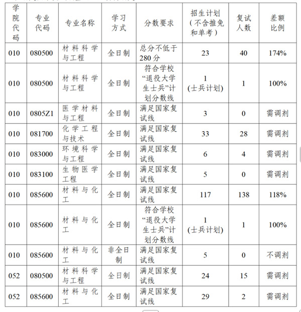 一、分专业招生计划及复试分数要求