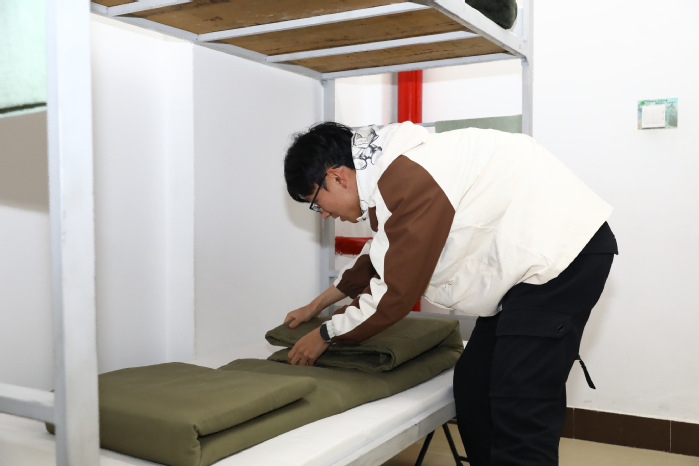在“军营内务体验”环节,同学们走进了士兵生活区,领悟优良作风的真谛。干净整洁的床铺、整齐摆放的装具、整齐划一的内务设置,处处彰显着军人严谨细致的作风。士兵们耐心地穿梭在同学们中间,从最基础的叠被子开始手把手教学,演示如何将被子的每一个角都折叠得方方正正。在讲解物品摆放时,士兵们细致入微,强调着每一件物品的摆放位置与角度,背后蕴含的是部队严格的纪律要求。同学们个个神情专注,眼睛紧盯着士兵们的一举一动,手中的动作也随之开展,一丝不苟地学习着标准化内务整理的要领。活动结束后,同学们纷纷表示会将在部队中学到的内务整理的标准与规范带回校园,带动周围同学共同加强寝室卫生。MK体育也将通过内务专项检查、日常内务评比、优秀寝室展示等方式,推动员工提升自律意识,提高内务整理水平,营造整洁有序的寝室环境。