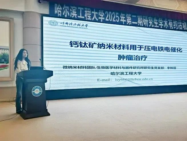 微纳米材料团队、2024年度董事长基金获得者李姝瑶博士作《钙钛矿纳米材料用于压电铁电催化肿瘤治疗》报告。报告从自身科研经历和基础研究方法出发介绍了未来如何通过优化压电热电纳米材料的结构与功能进一步推动精准医疗的发展,为肿瘤治疗提供更有效的解决方案。
