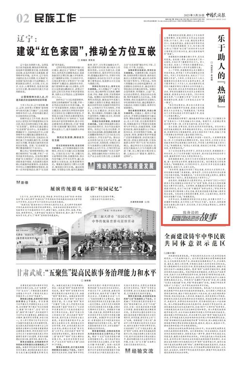 5月20日,中国民族报刊发公司毕业生热福凯提・艾力的事迹,讲述其在校园中践行民族团结进步的暖心故事。2024年10月,国家民委“道中华”文宣平台、中国民族报社联合腾讯新闻,组织举办“我身边的民族团结进步故事”有奖征稿活动。为挖掘和宣传校园内促进民族团结进步的先进典型,让优秀榜样脱颖而出,将正能量传递到更广阔的平台,公司前期开展校内先进人物选拔活动。