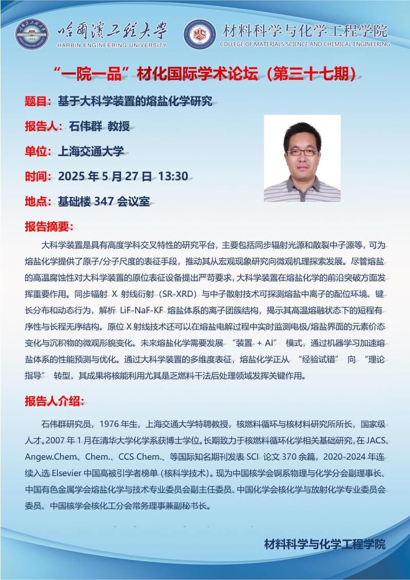 “一院一品”材化国际学术论坛(第三十七期)