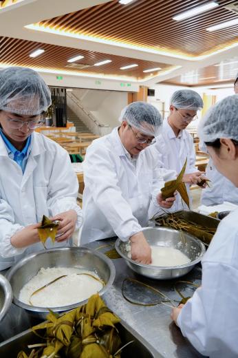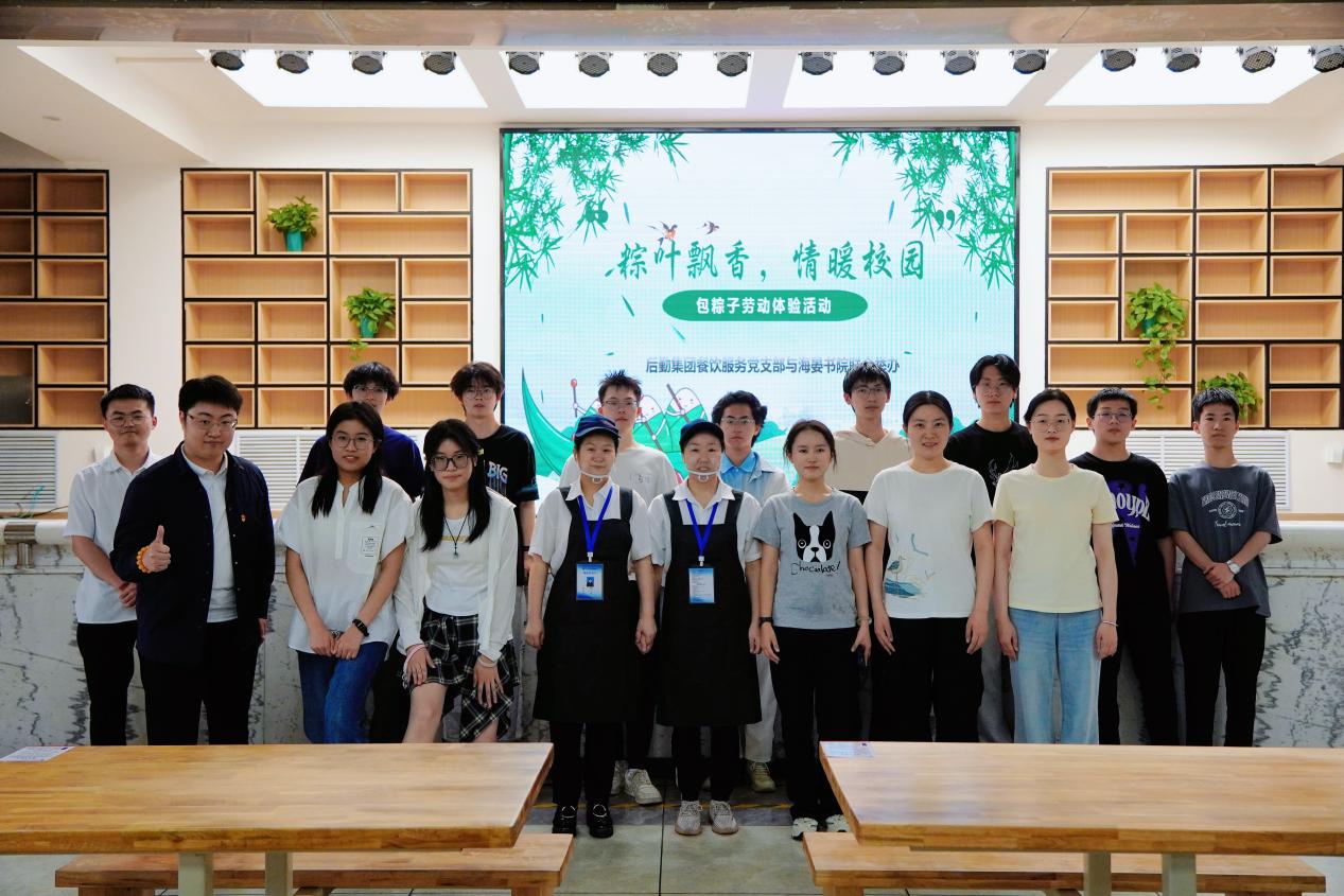 片片粽叶裹温情,粒粒糯米藏心意。为弘扬传统文化,培养劳动精神,2025年5月29日15:00,后勤集团餐饮服务党支部、海晏书院第三功能型党支部于小美食堂3层联合举办“粽叶飘香,情暖校园”包粽子劳动体验活动,公司党委常委、副董事长严汝建与15名本科生共同参与活动。