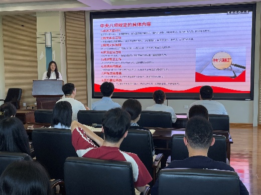 杨丹以《强党性守初心:深入贯彻中央八项规定精神》为题进行专题授课,系统阐释了中央八项规定精神的核心内涵与时代价值,重点围绕改进工作作风、密切联系群众、厉行勤俭节约三个方面作了深入解读。授课紧密结合党的作风建设实际,以陈赓大将红色家风传承等生动案例,深刻剖析了中央八项规定在整治“四风”、净化政治生态中的关键作用。杨丹指出,中央八项规定不是简单的行为准则,更是我们党永葆肌体健康、赢得党心民心的制胜法宝。授课过程中,她引导全体党员重温入党誓词、追忆入党初心,有效激发了同志们“为共产主义奋斗终身”的政治责任感和“科研报国”、“实业报国”的时代使命感。