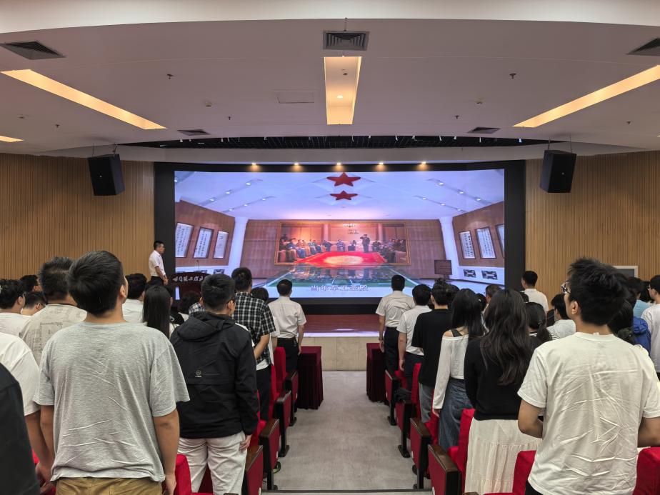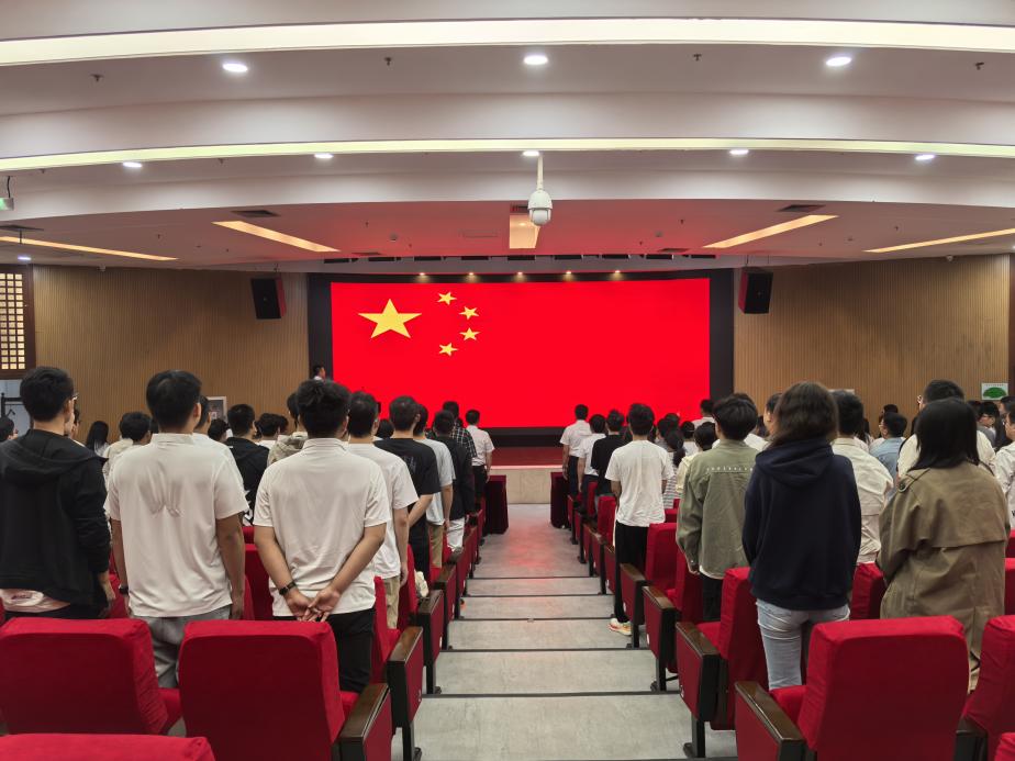 仪式在庄严的国歌声中拉开帷幕。激昂的旋律回荡在报告厅内,全体师生肃立行注目礼,爱国情怀与奋进力量在每个人心中激荡,也让新同学们深刻感受到作为材化学子的责任与使命。