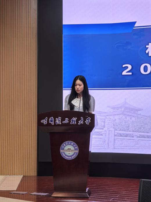 在校研究生代表李姝瑶结合自身科研与学习经历,为新同学们送上“干货满满的建议”。她从文献阅读、实验记录、团队协作等方面分享经验,鼓励研究生新生们要尽快适应研究生的科研节奏,在探索中找准方向,在坚持中收获成长。
